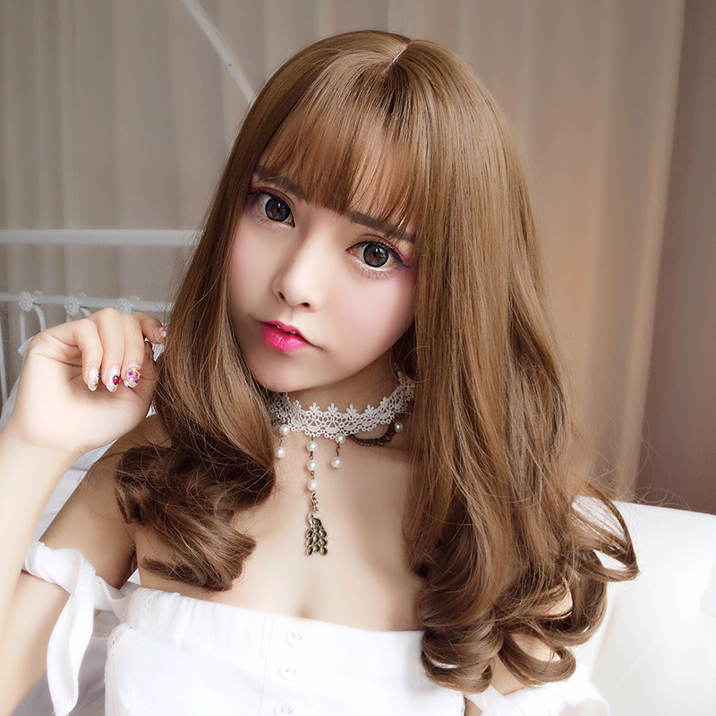 Woman's long curly haired round face air Liu Hai Pear head set, Korea Qi Liu Hai short curly hair