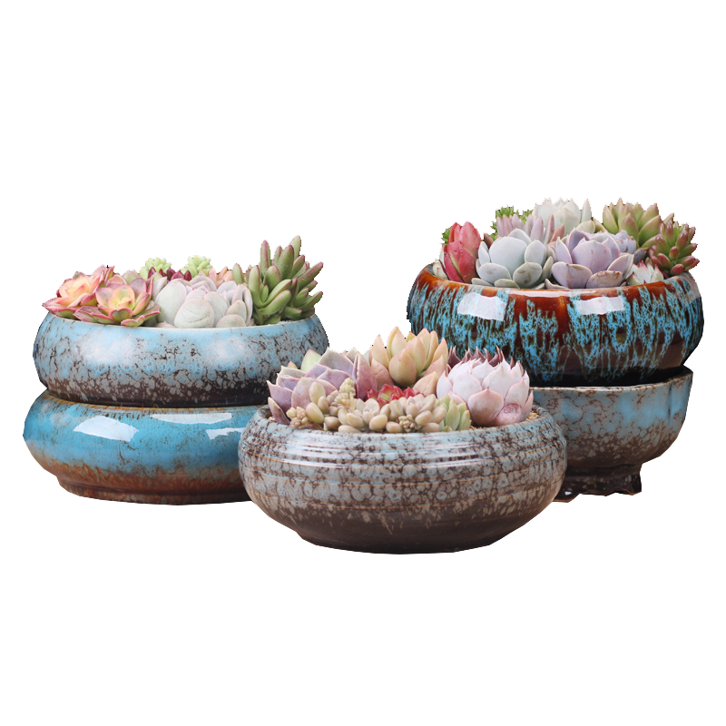 Simple creative succulent flower pot breathable coarse ceramic size meat thumb pot set Special clearance