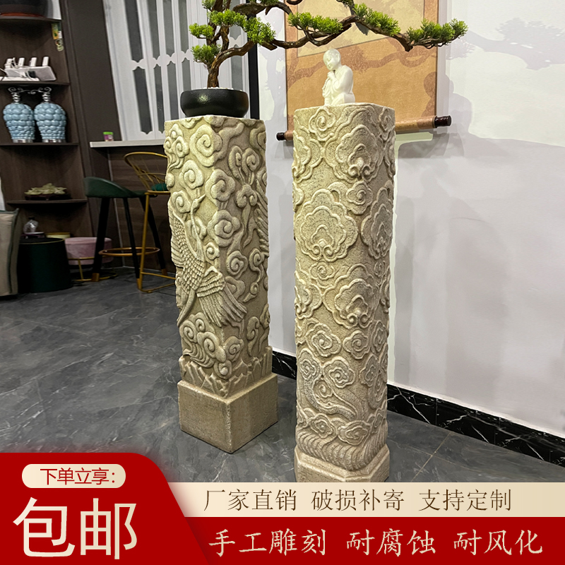 Tie horse pile stone carving ornaments Chinese natural stone pillar Han Baiyu bolt horse pillar Xiangyun outdoor courtyard tie horse stone