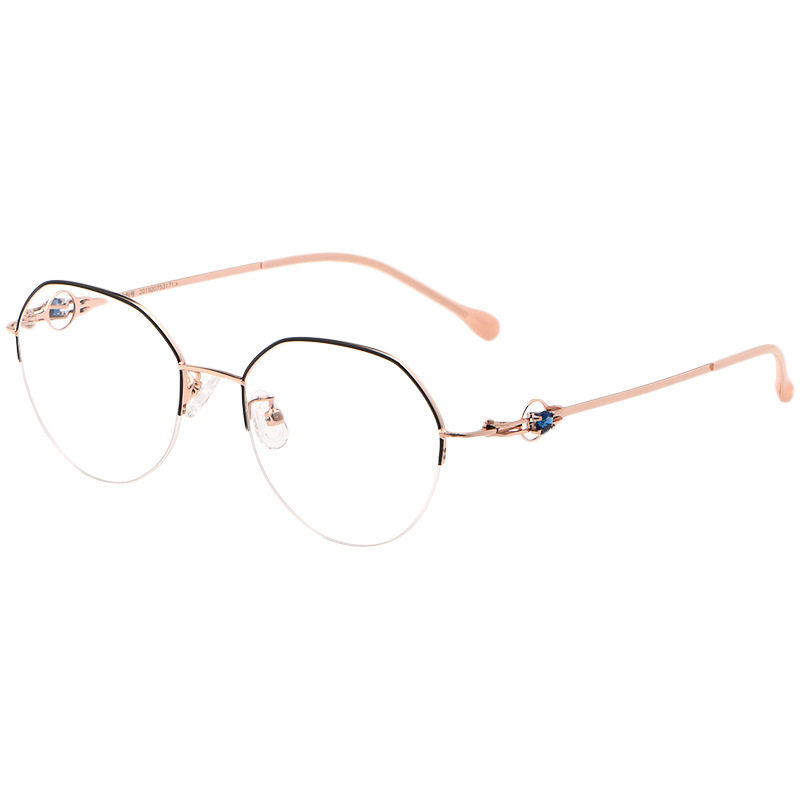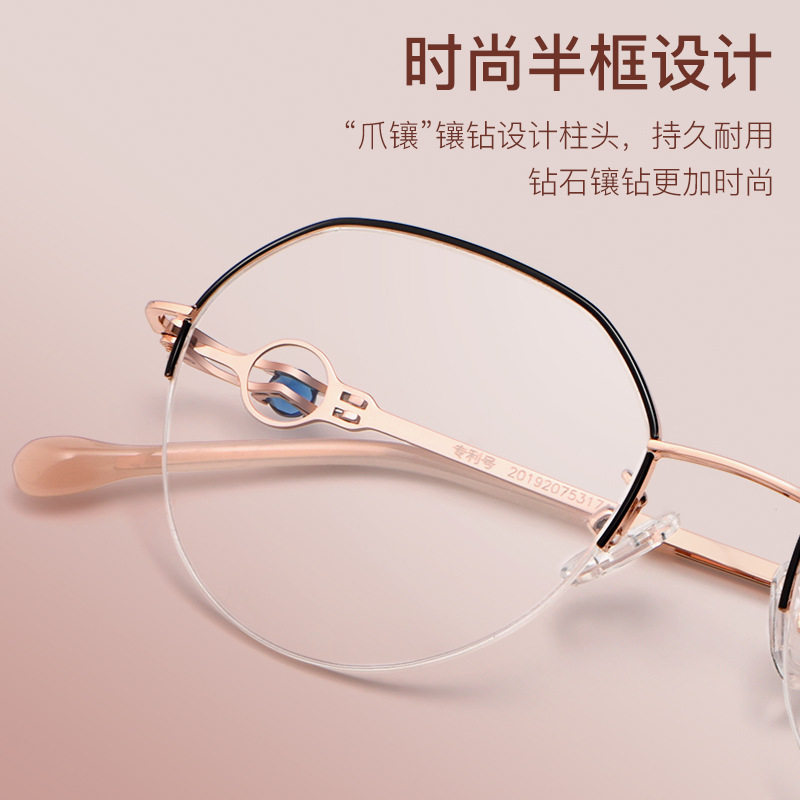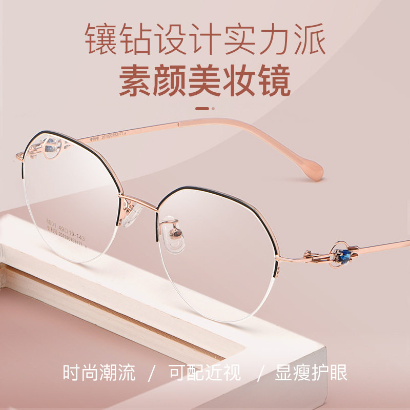 Half-frame ultra-light pure titanium myopia glasses women can match degree anti-blue light big face thin retro frame male discoloration 8001