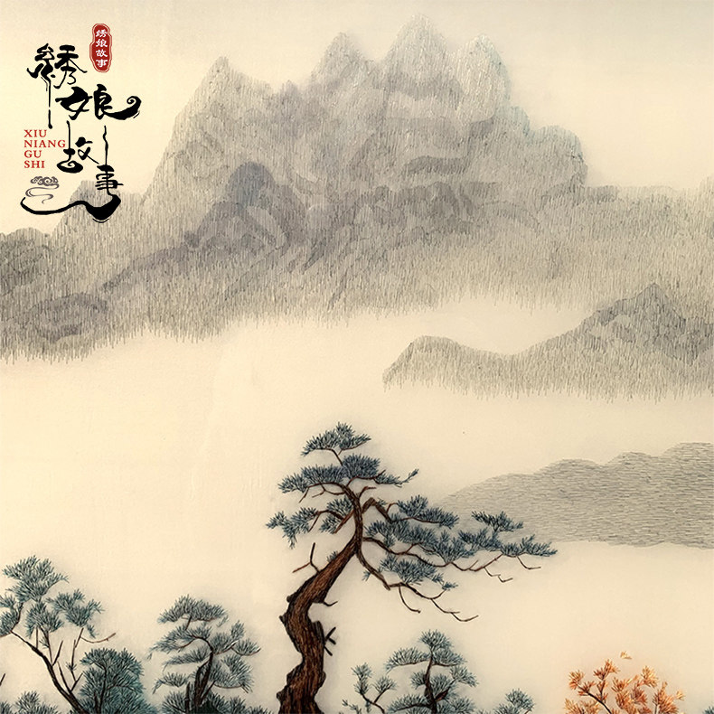 Su Embroidery Finished Product Hanging Painting Handmade Embroidery Wall-mounted Painting Chinese Landscape Painting Living Room Sofa Wall Book House Office Decoration