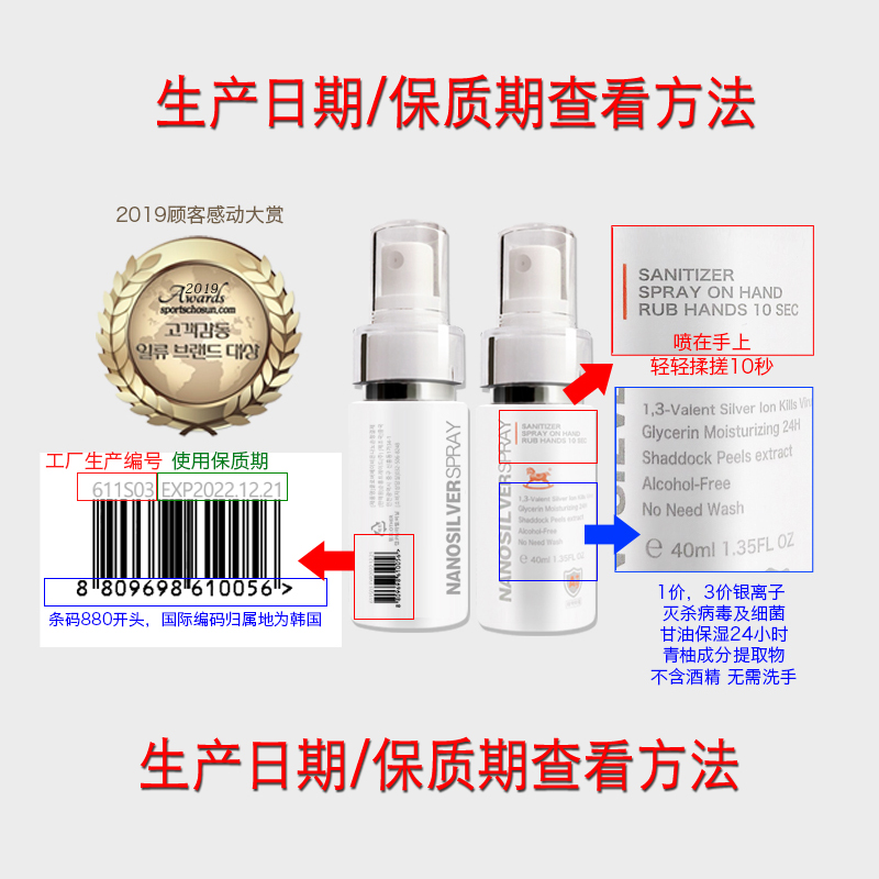 South Korea Silver Ion Free Wash Hand Sanitizer Liquid Disinfectant Germicidal and Portable Carry-on and Dry Hand Children Adult