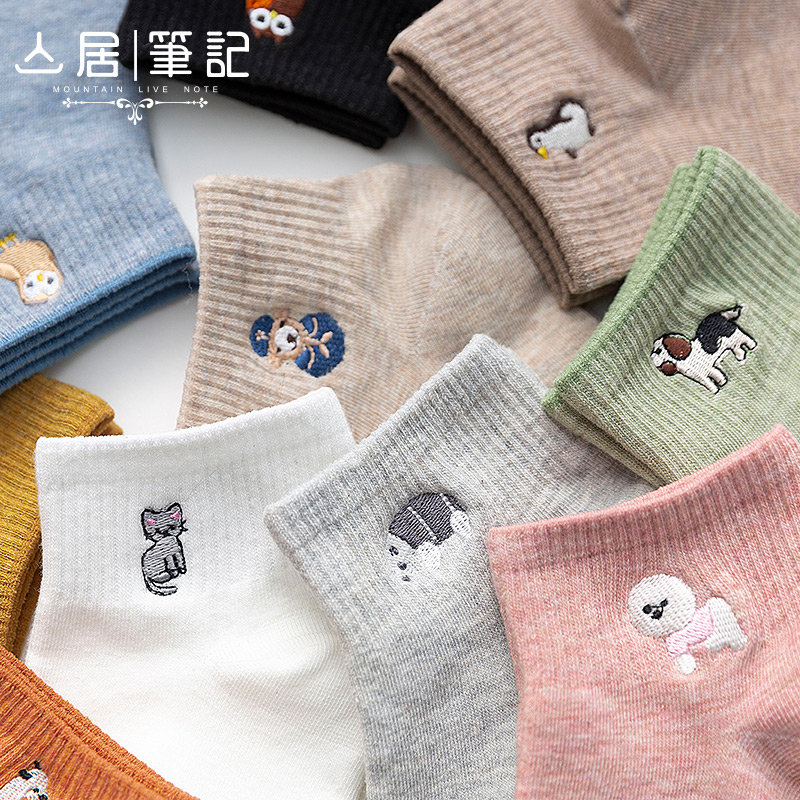 Shanju Note Socks Women's Socks Shallow Mouth Cute Thin Cotton Socks Cartoon Ins Net Red Style Tide Short Tube Short Summer Style