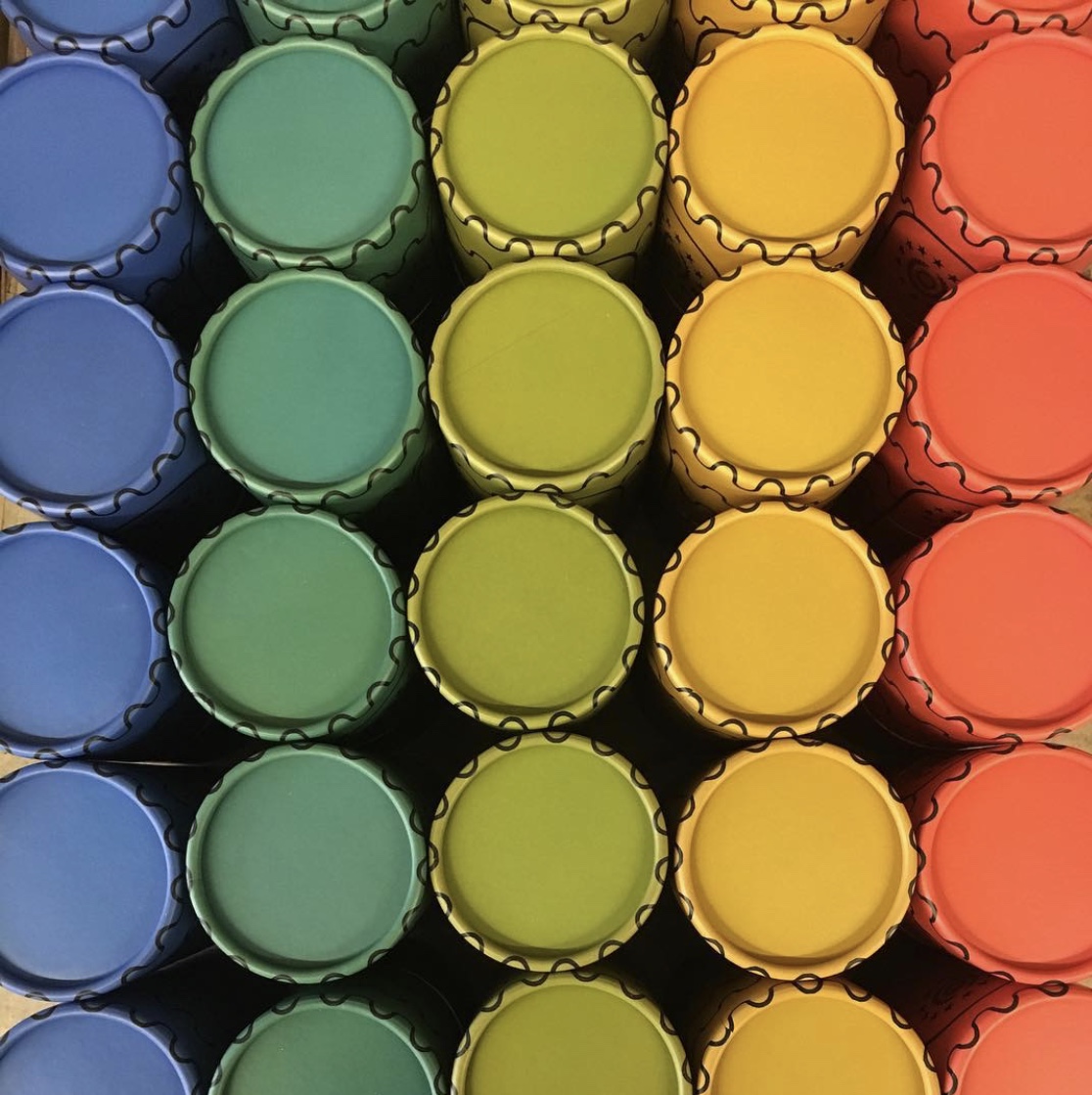 Red (cedar rope) mustard yellow (Peruvian sacred wood) bright yellow (citronella ball fruit) green (short pine ball fruit) blue green (sage grass sceptic) dark blue (beeswax)