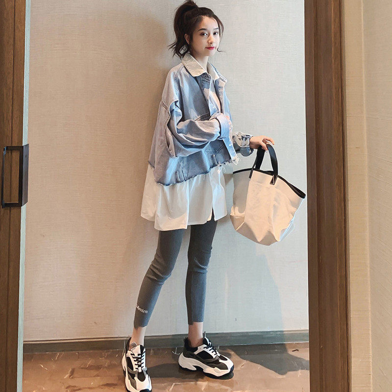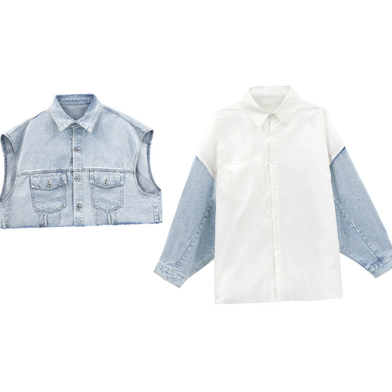 Blue (top two-piece set) blue (top two-piece set) + gray belly pants