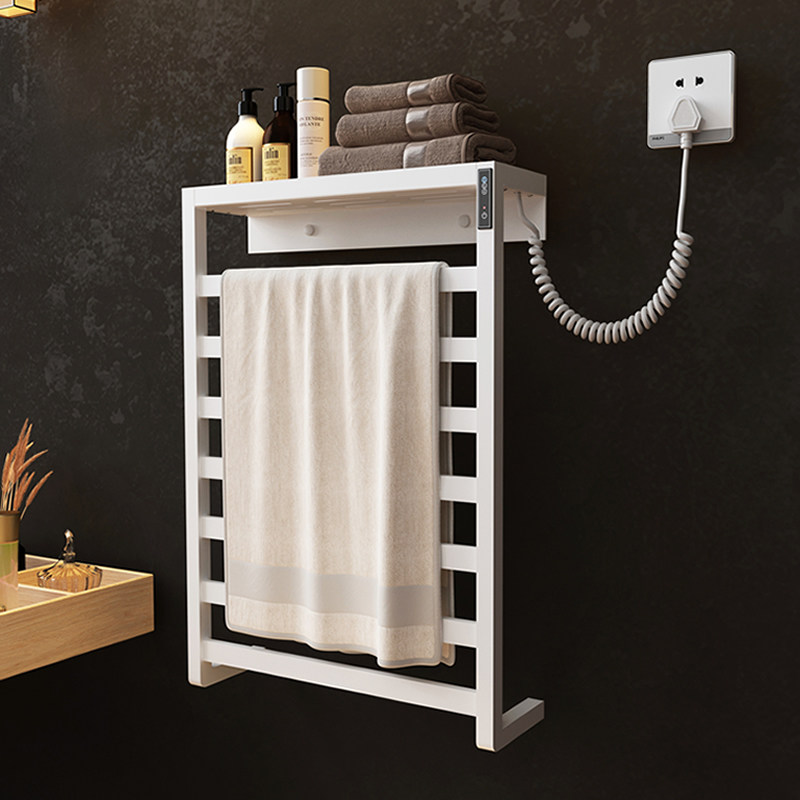 Smart-free punching electric hot towel rack drying rack Home Makeup Room Carbon Fiber Thermostatic Heating Wall-mounted Bath Towels