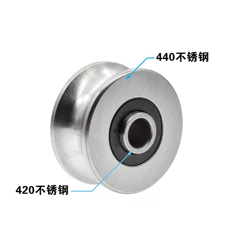 Band groove U groove groove rolling 440 stainless steel bearing roller wheel wheel wheel wheel waterproof rolling anti-rust 8*35*17