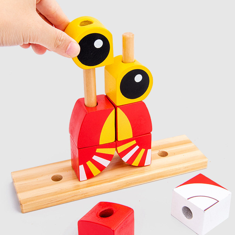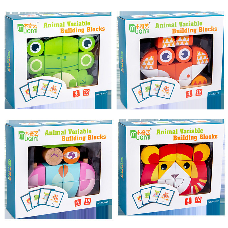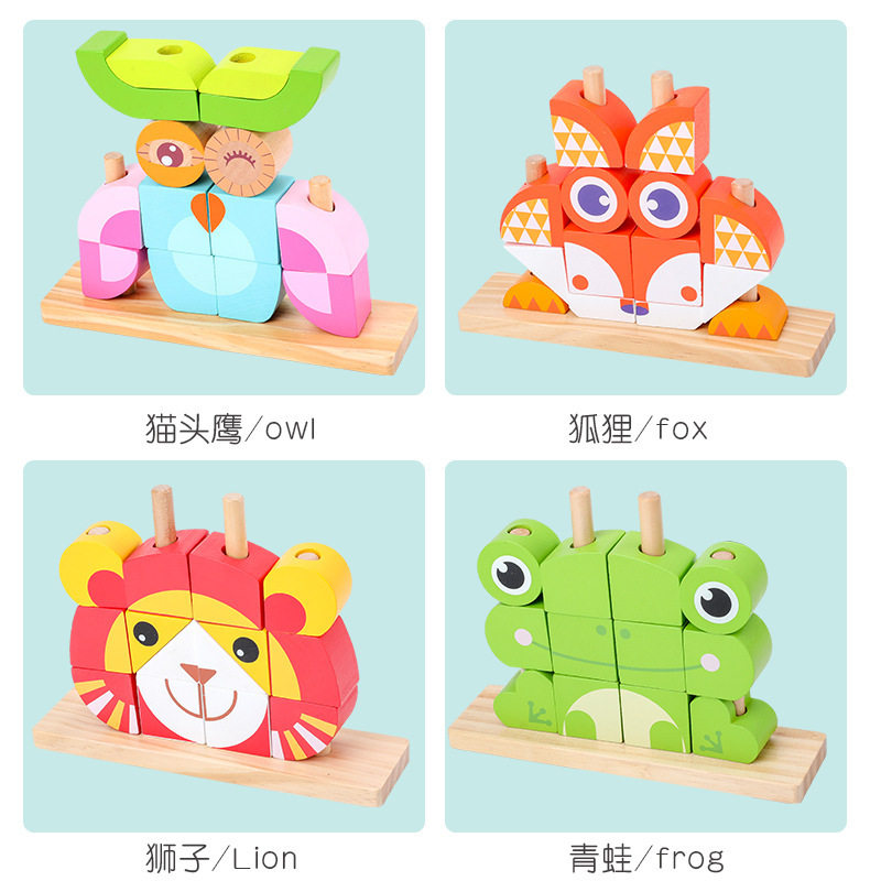 Creative and interesting large particles wooden three-dimensional building blocks changeable animals to build early education educational puzzle fight wooden toys