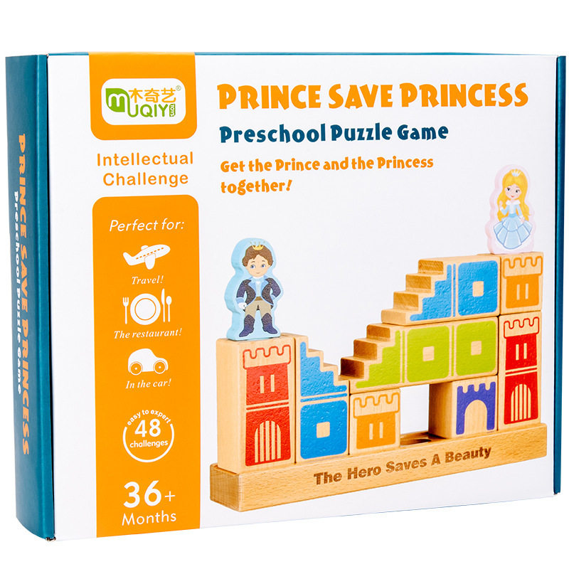 Wooden children's early education, the prince saves the princess, building blocks, parent-child interaction, educational development, desktop game toys