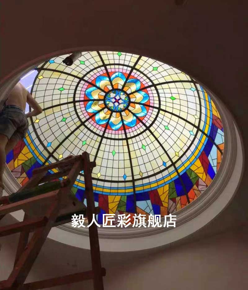 Custom Hotel Clubhouse KTV Foyer Dining Room Villa Dome European Style Color Church Art Glass Inlays