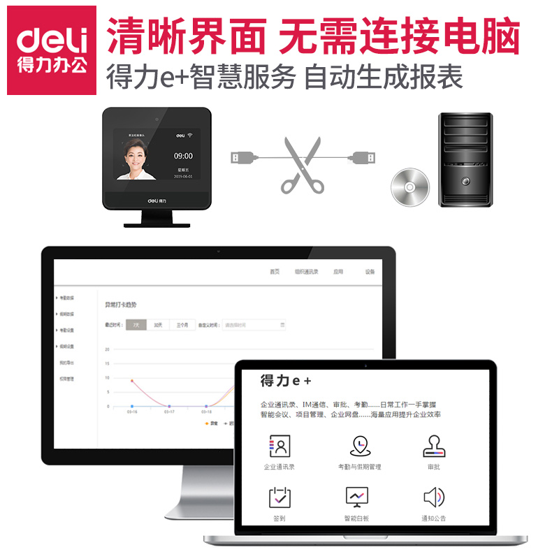Deli Face Recognition Attendance Machine D5D6 Face Brush Face Punch Card Machine Multiple People Brush Face WiFi Intelligent Cloud Sign-in Machine Off-site Multi-store Employee Commuting Check-in Machine