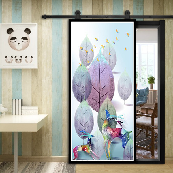 Jifei Painted Barn Door HD Pattern Selection Link Sliding Door Sliding Door Customization Toilet Barn Door