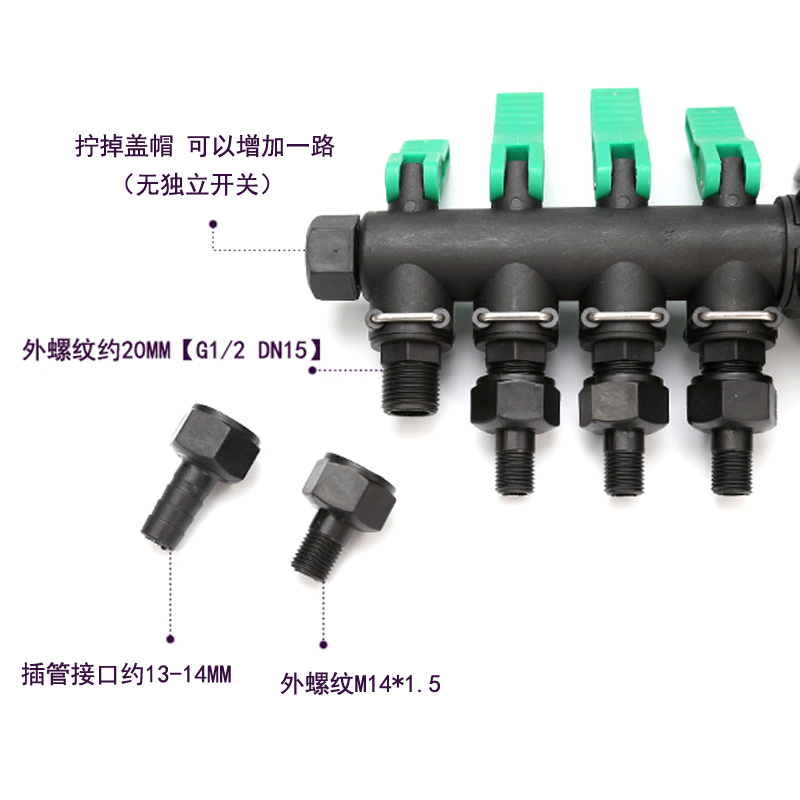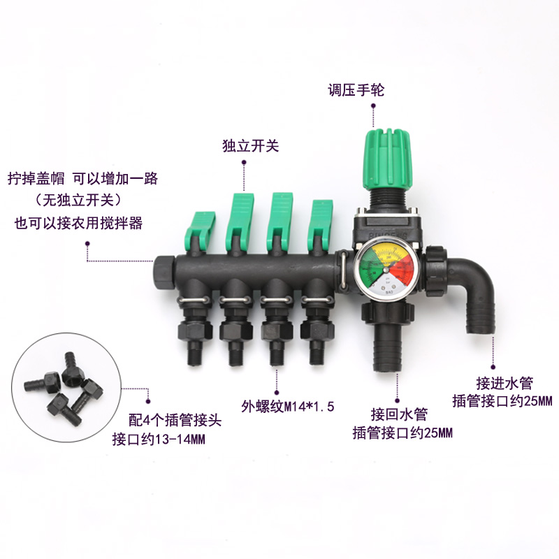 Uplanter 3 4-way water distributor high-pressure spray dosing machine Pressure-pressure sprayer branch with valve to control agricultural accessories