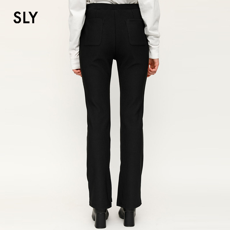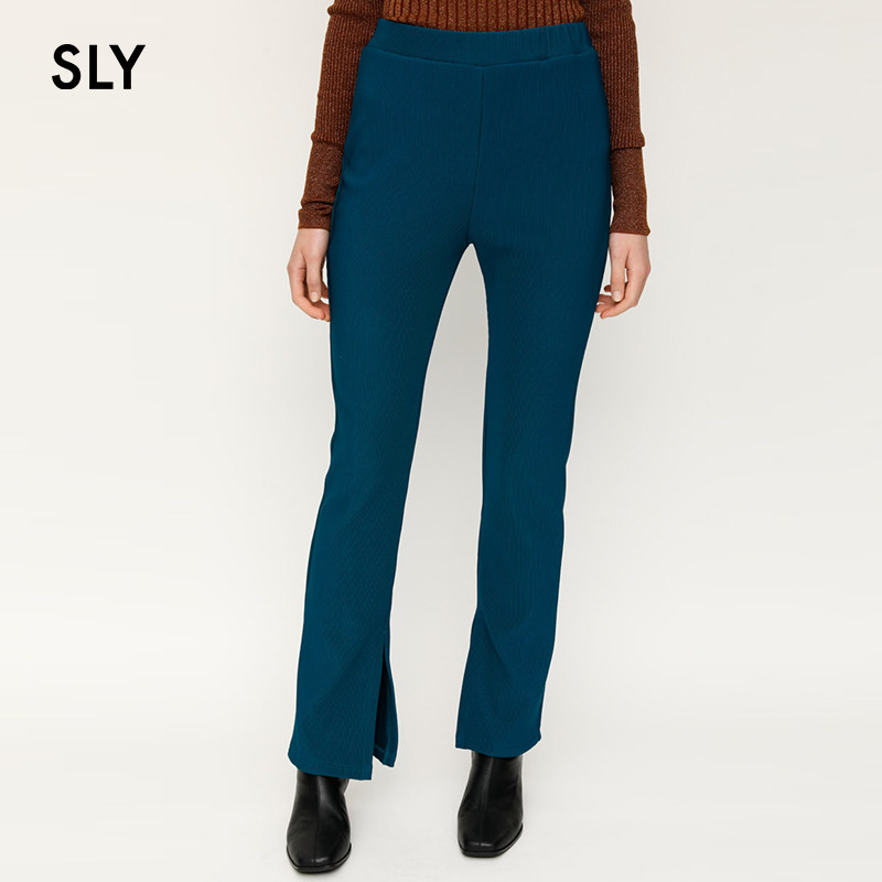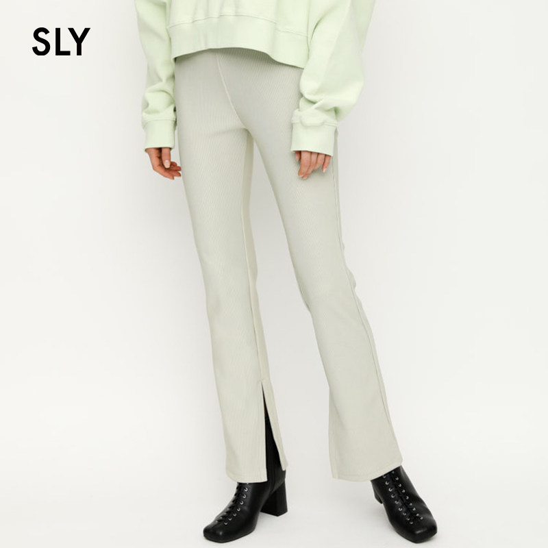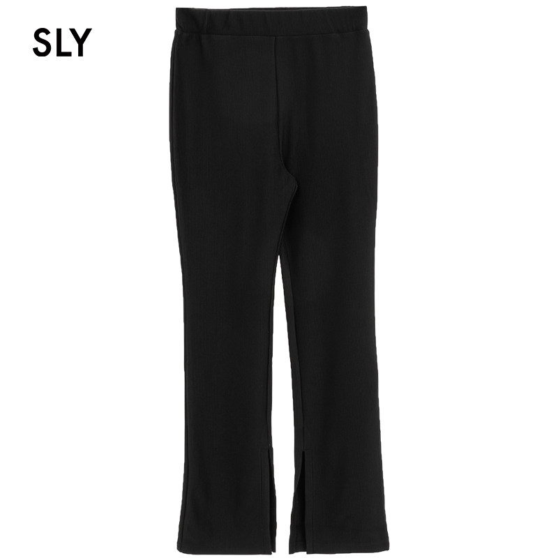 SLY summer new solid color gloss sense micro-horn side split long version casual pants women 030DSM81-1550