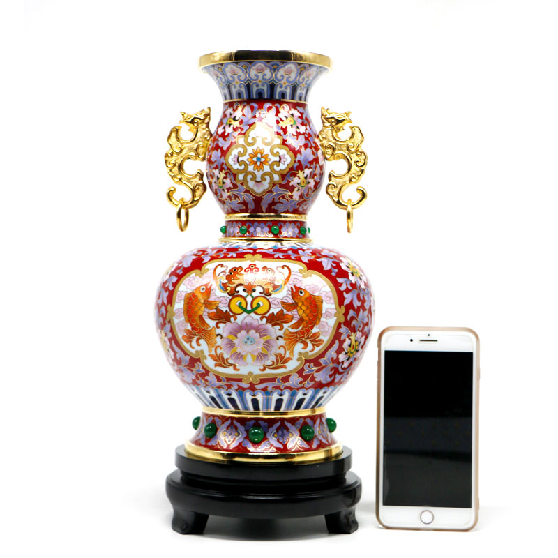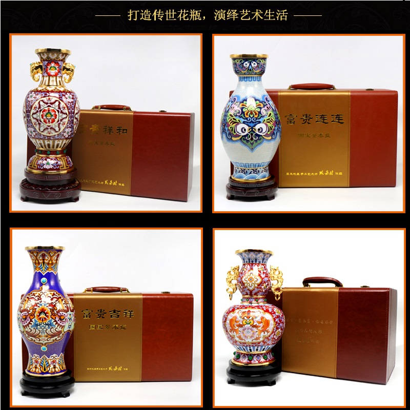 Jingtai Lanfu Eye Vase in front of the Vase piece of copper tire pinching silk enamel tourism craft gift to decorate foreign gifts