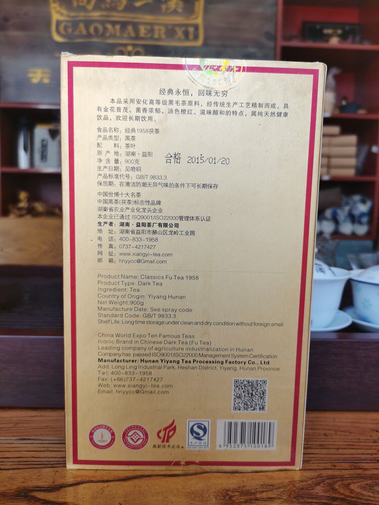 Hunan black tea Xiangyi 2015 Fu tea Classic 1958 Fu tea 900g special products Brick Tea 900 gr Golden Flowers Black Tea