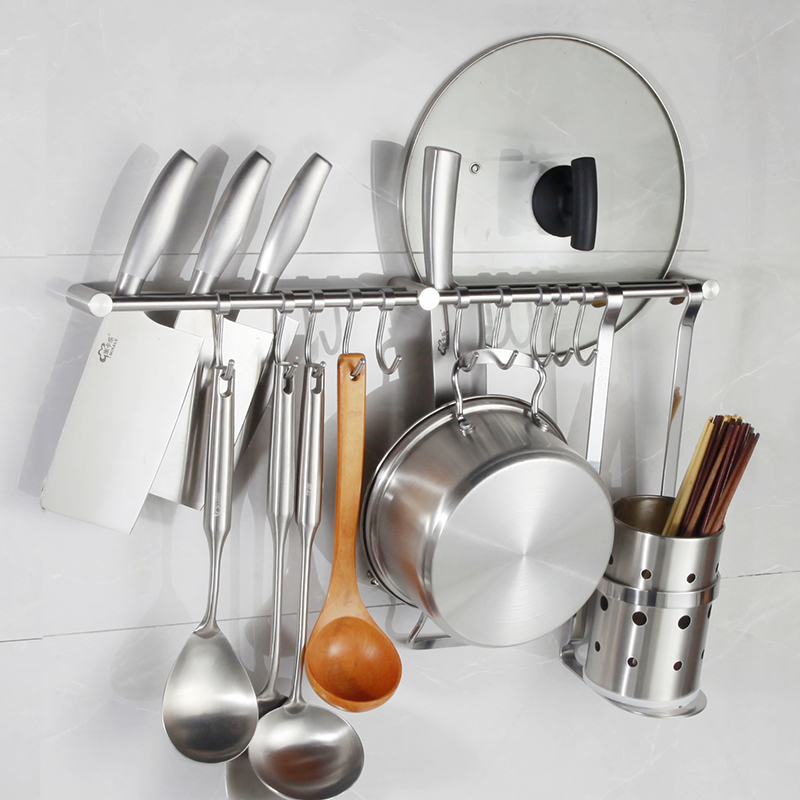 Kitchen Hanging Rod double-lever 304 stainless steel free of stiletto active hooks wire drawing ribs lengthened shelve