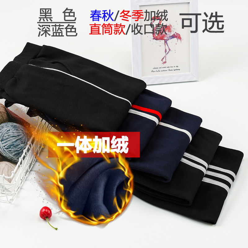 Children's navy blue plus velvet school uniform pants primary school students a two-bar dark blue girl's navy blue boy's sports pants