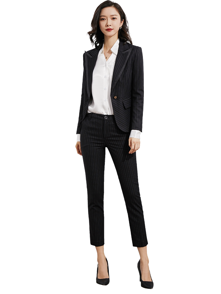 Advanced Sensation Great Cards Career Suit Women Fashion Temperament Fall New Ol Work Suit Black Striped Suit Positive Dress-Taobao