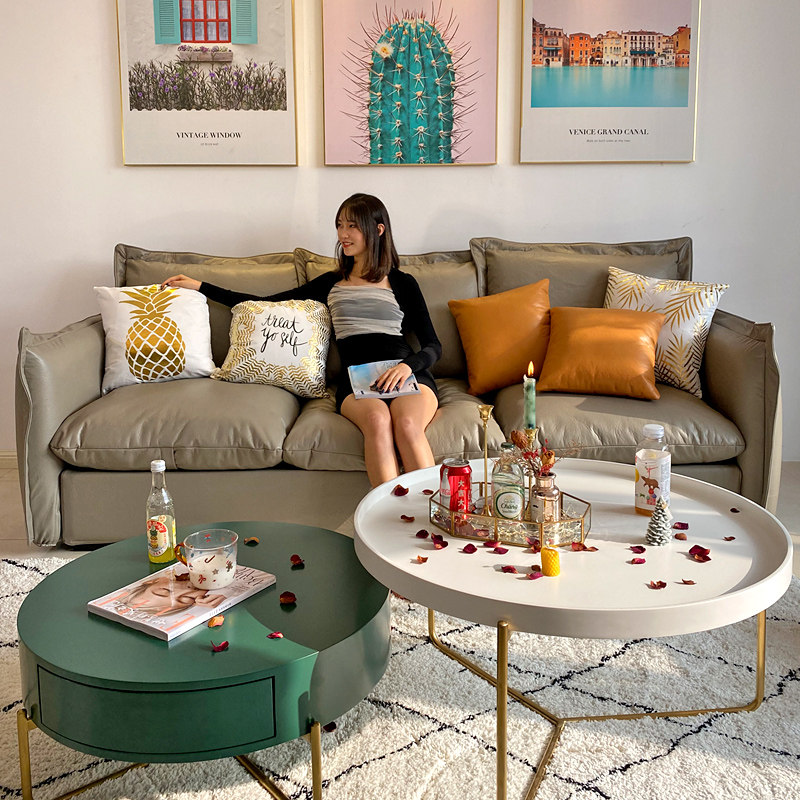 Nordic style technology fabric three-seat sofa modern minimalist small apartment living room latex straight row combination furniture
