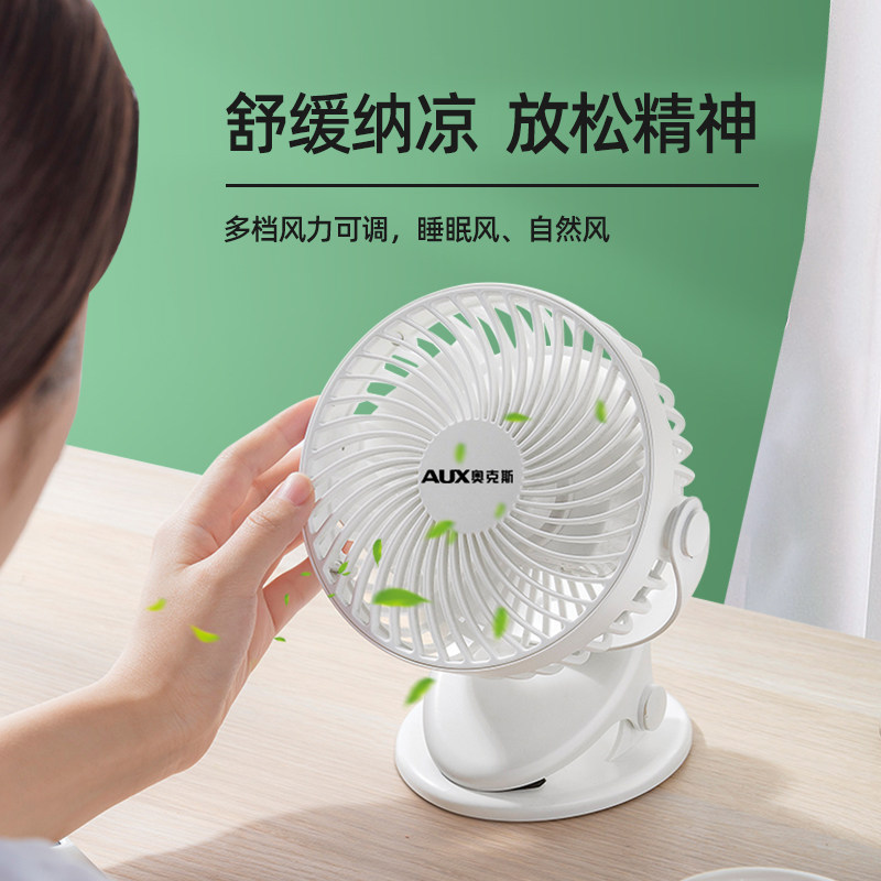 Oaks small fan Small student dormitory portable mini rechargeable USB clip-on mute portable clip-on fan