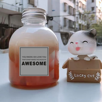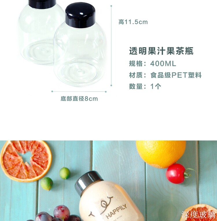 New fruit tea milk tea 400ML big mouth drink bottle PET bottle round plastic bottle black cap honey juice bottle