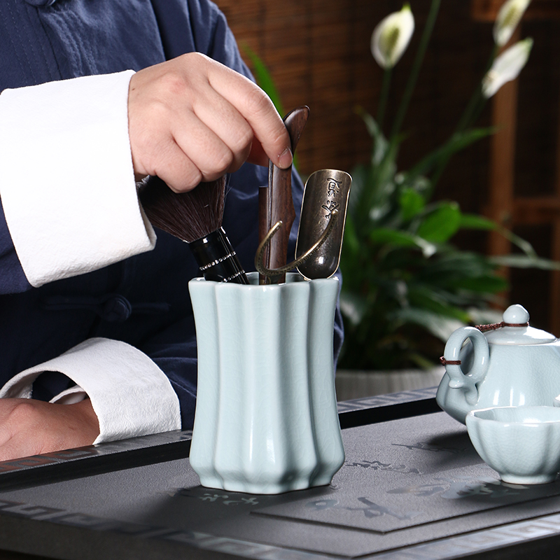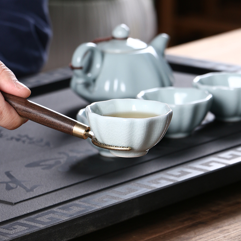 Ru kiln tea ceremony six gentlemen solid wood ebony tea needle pot raising pen tea clip set kung fu tea set accessories tea ceremony tea art