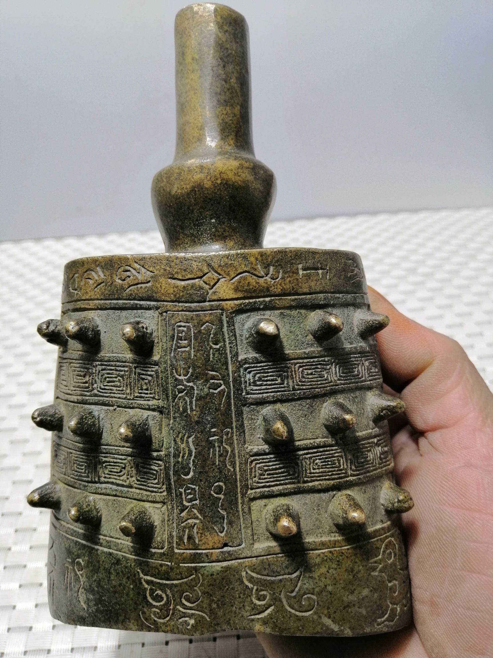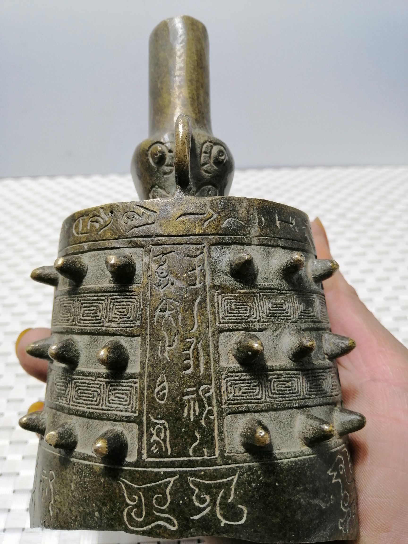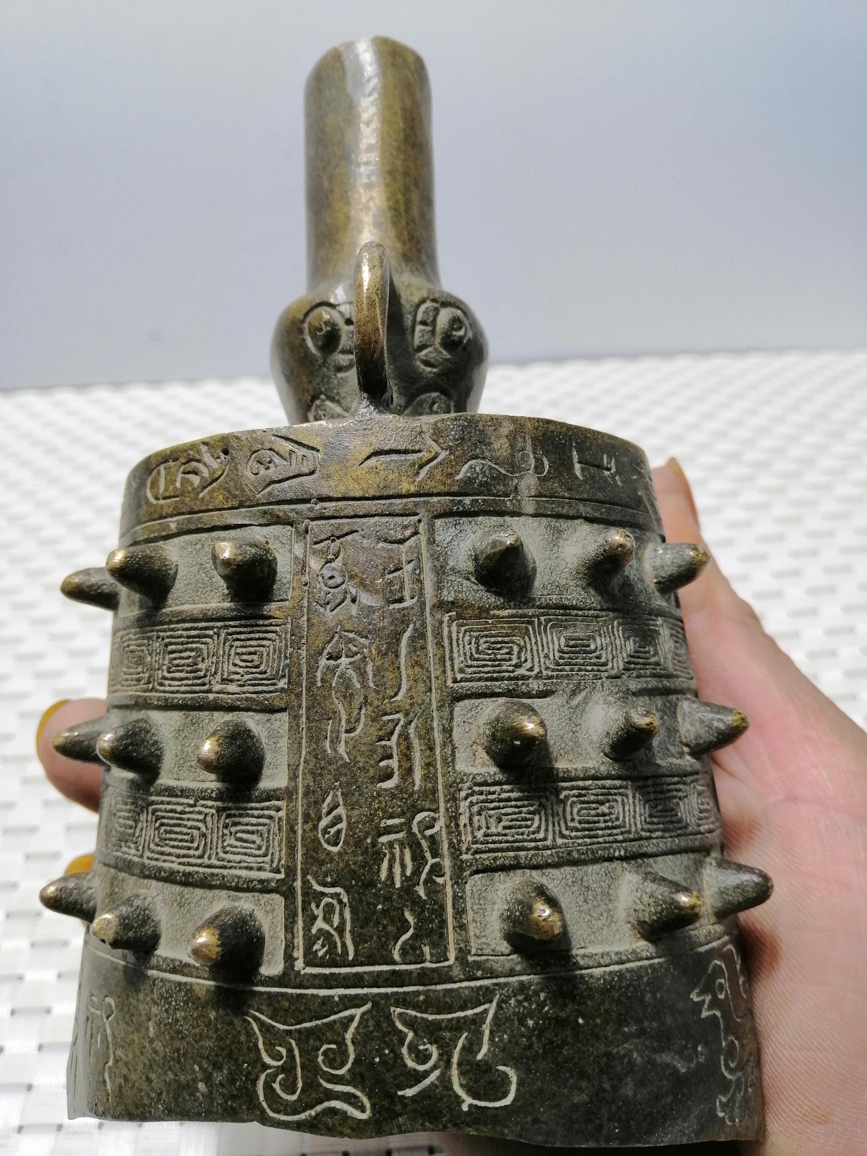Pure copper flat bell antique made of old bronze instrumental musical instrument bronze bell mouth clock home Decorative Craft Gift Hem pendant