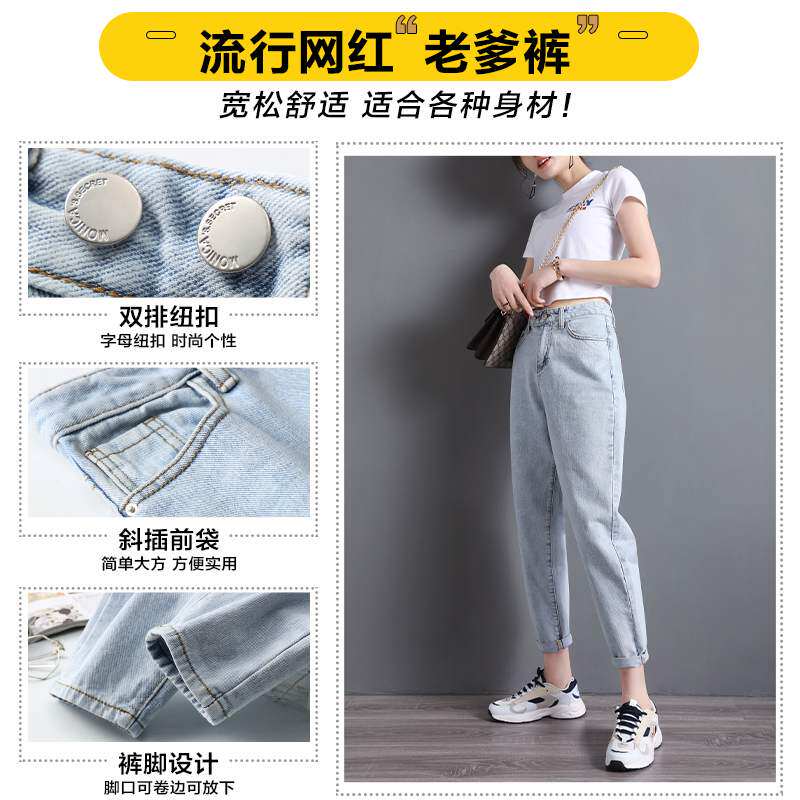 Tide Card Light Color Jeans Woman Loose Straight Drum Pants Children Spring Dress 2020 New High Waist Display Slim Old Daddy Pants