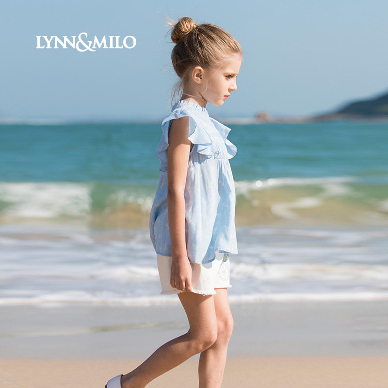 Lynn Milo Myrro Children's Summer Girl Lotus Sleeve T-shirt Costumes Casual Shorts Ocean Gas Set