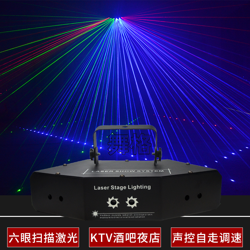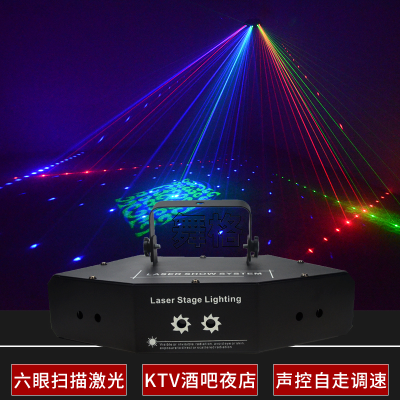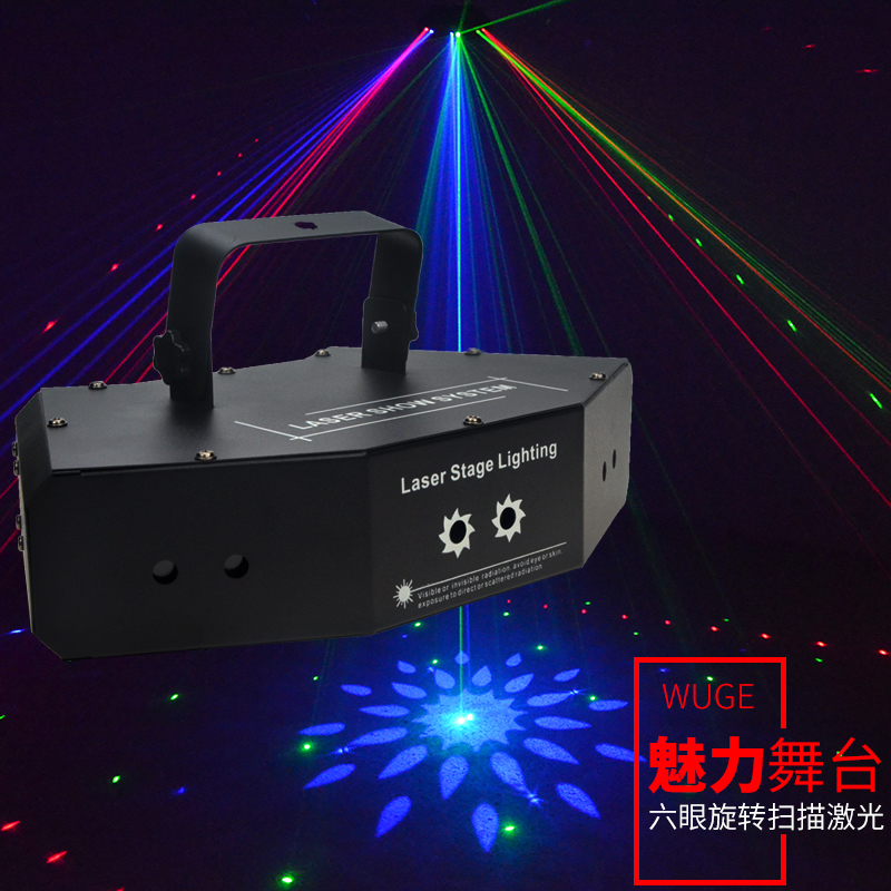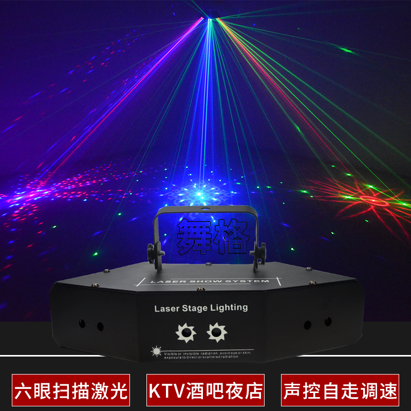 Sound-activated six-eye laser light KTV laser light Bar laser spot light Rotating cabaret color light Stage Bungee flash light Private room scanning laser pattern light Colorful light Home