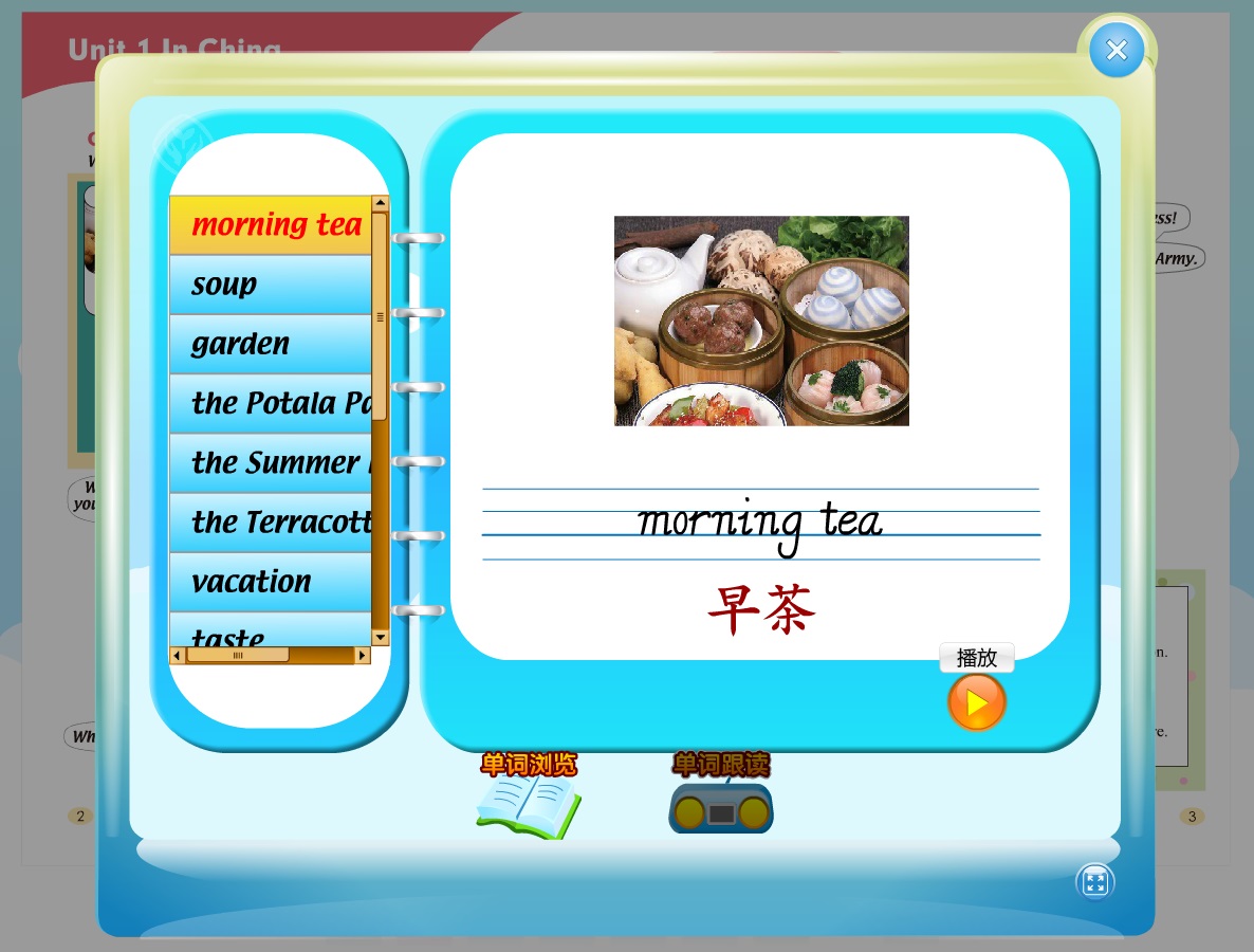 6 on the computer used point reading learning software (information 1) 6 upper class text and single word MP3 audio (information 2) 6 on the computer used game practice software (information 3) 6 MP4 on the MP4 of the class text