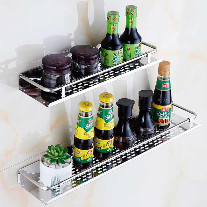 Kitchen Shelve Stainless Steel Free Punch Monolayer Seasoning Condiment Condiment Wall-mounted Rack Wall Cookware Soy Sauce Containing shelf