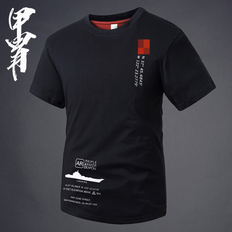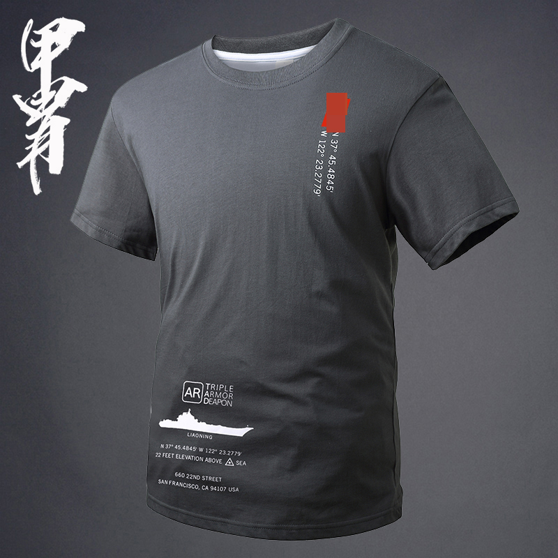 Armor theme commemorative model second-generation aircraft carrier theme military fan short-sleeved T-shirt round neck cotton T-shirt red label version