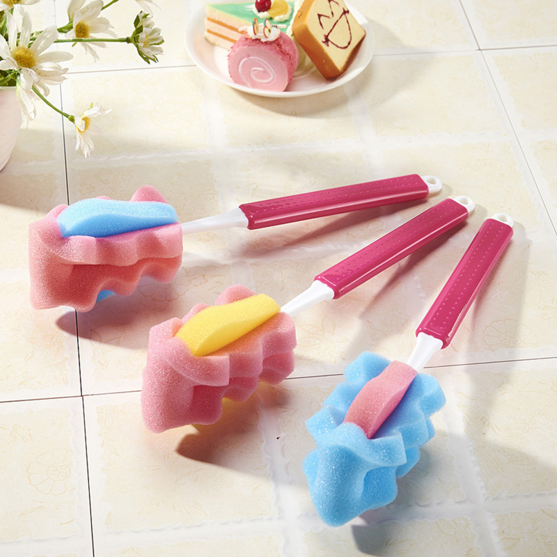 Fan plastic long handle cup brush Bottle brush Retractable cleaning brush Sponge cup brush Bottle brush Thermos cup glass brush