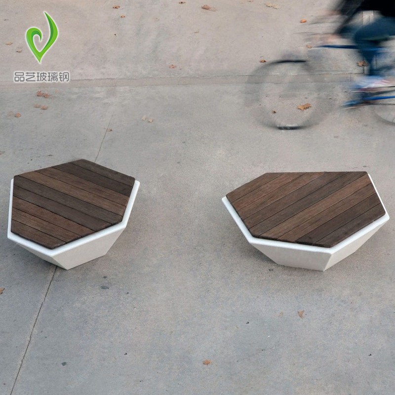 Meichen outdoor FRP diamond-shaped leisure seats plus anti-wood cushions outdoor mall ornaments rest area waiting chair stools