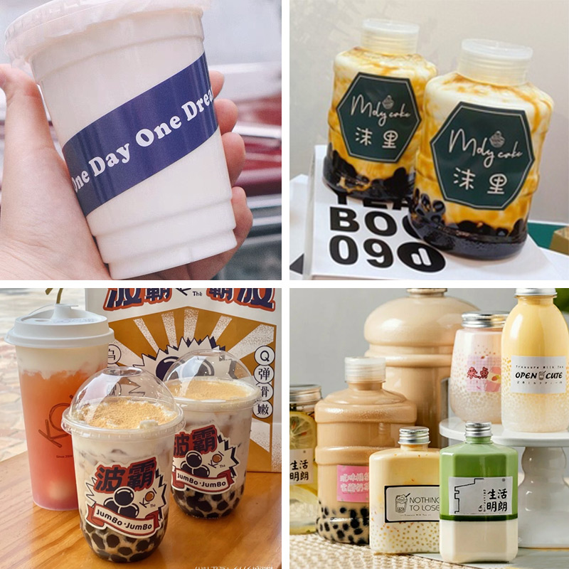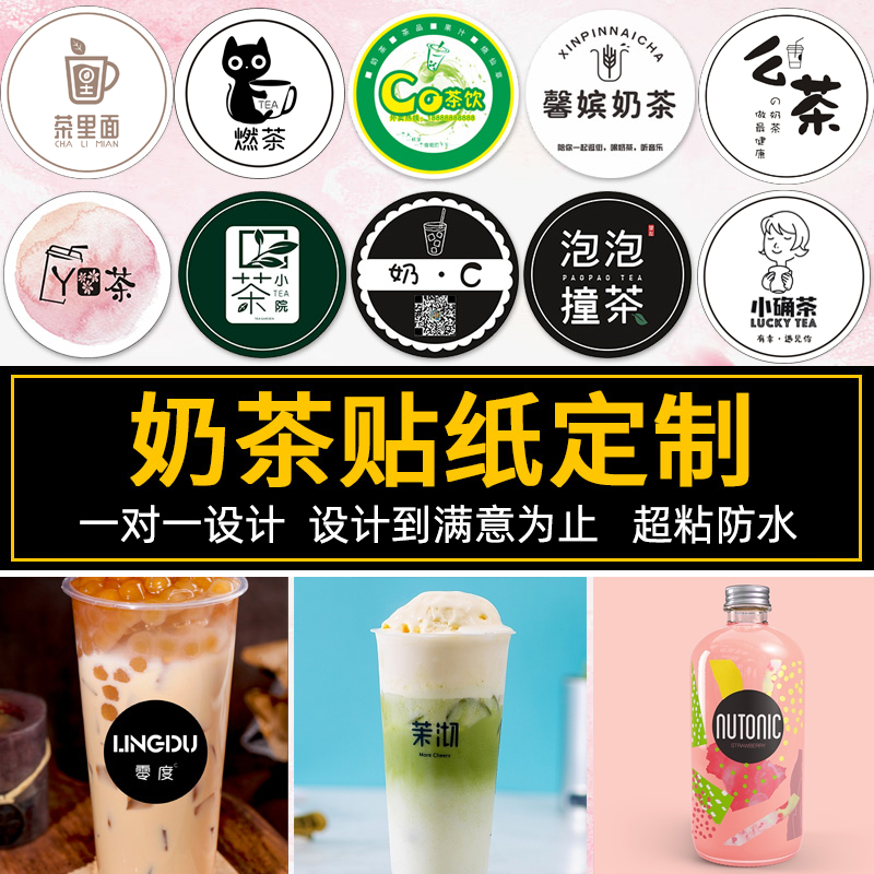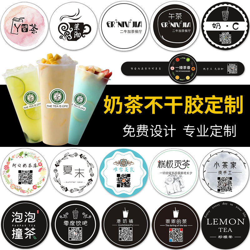 Milk cup stickers tailored lemon tea net red logo taste waterproof fauna coffee hot drink shop advertisement customized two-dimensional code transparent self-adhesive cup sticker in wind stamping design