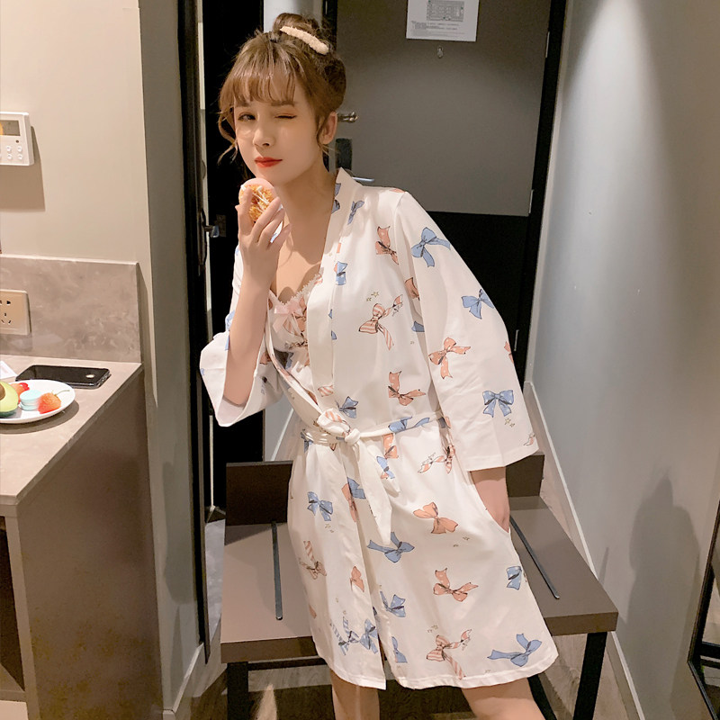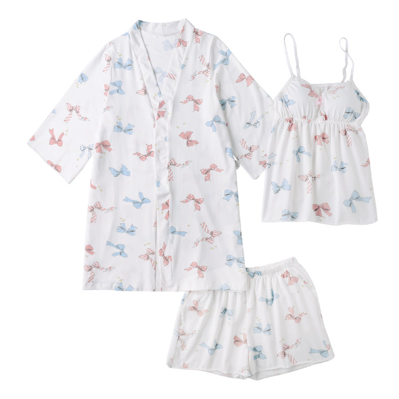 ins pajamas women's spring, summer and autumn three-piece shorts suspenders student white fresh and sweet home clothes with bra pad cover