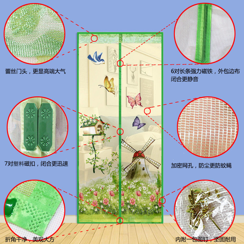 Mosquito-proof fly-proof Insect Door Curtain Summer Home Mute Cartoon Encryption Self-Suction Magnetism Free 7-button soft yarn door