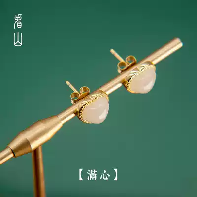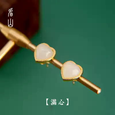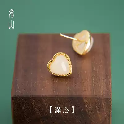 Clearance) full of heart) Hetian White Jade small ear needle female heart-shaped sterling silver jewelry Chinese style raising earrings decorated with new
