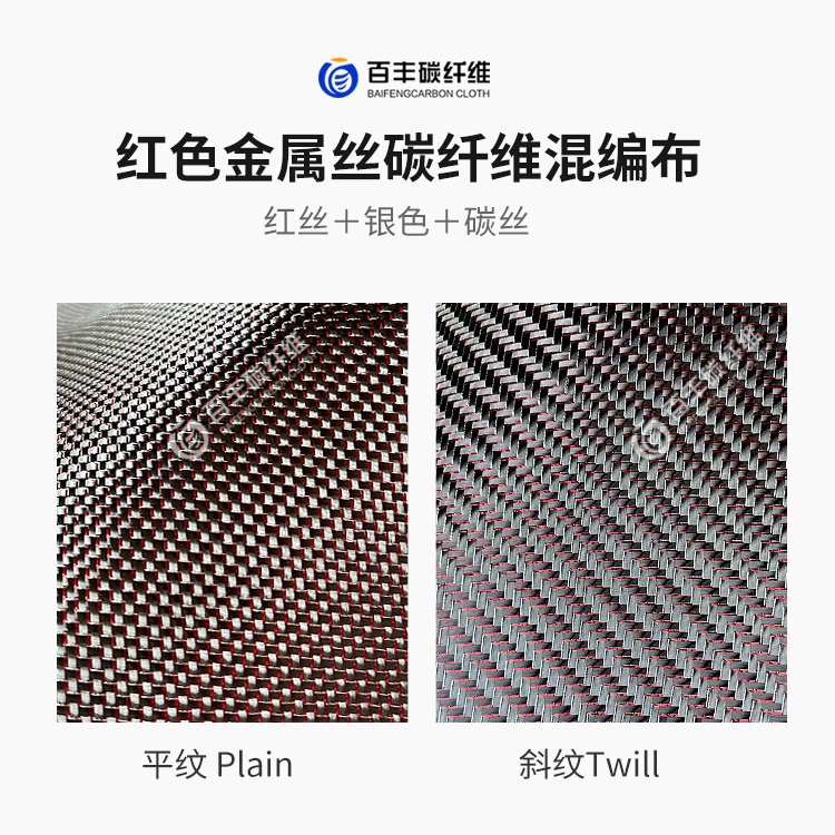 Baifeng red silver 3k carbon fiber metal wire mixed fabric carbon fiber plated metal wire gold and silver wire