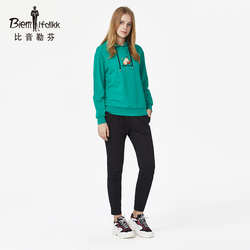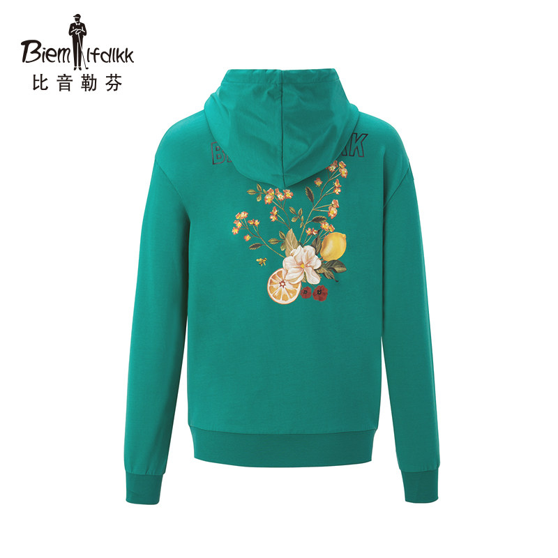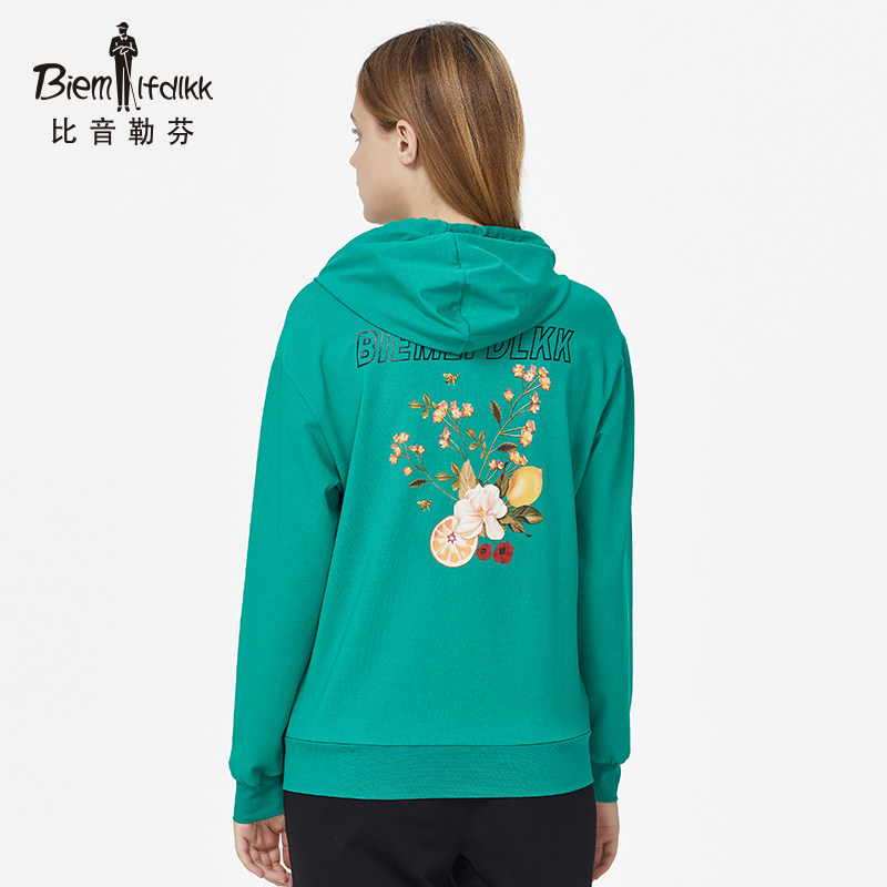 More than tone Le Fen Spring Summer sweatshirt lady pattern printed long sleeves with cap pumping rope loose jacket Fashion casual