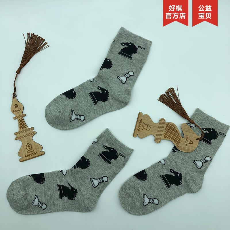 Good Chess Clear Cabin Chess Themed Socks 3 Double Loaded Children Pine Cotton Socks Elementary School Kids Wear-wearing midcylinder socks