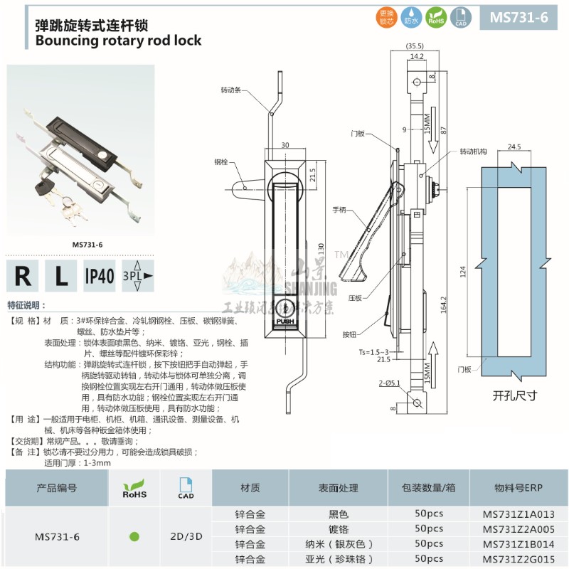 MS731-6 cabinet lock chassis lock cabinet body sheet metal door lock linkage lock MS460-1 cabinet lock electric box lock