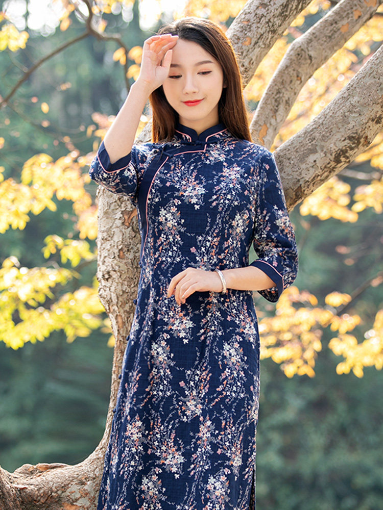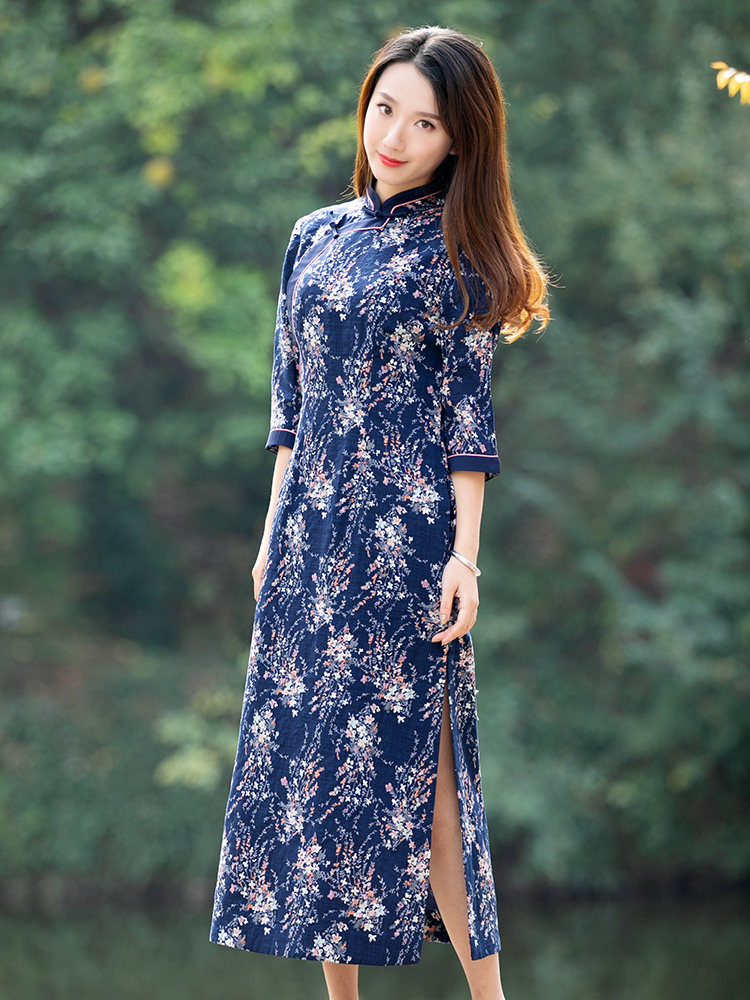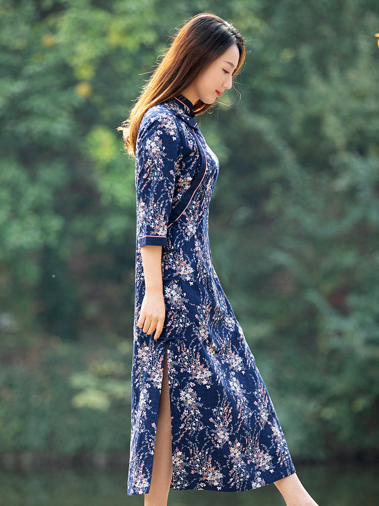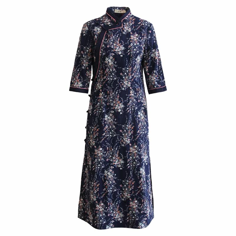 Qipao Improved version of the dress The long version of the loose version of the cotton linen reduces the color of the body and the wind and women's clothing