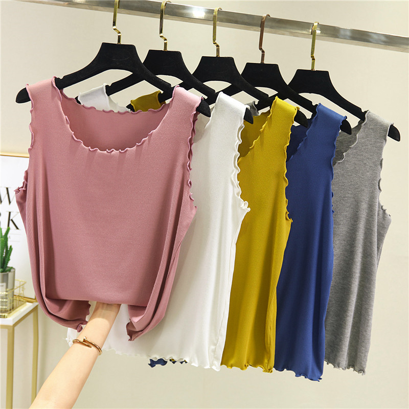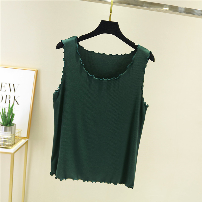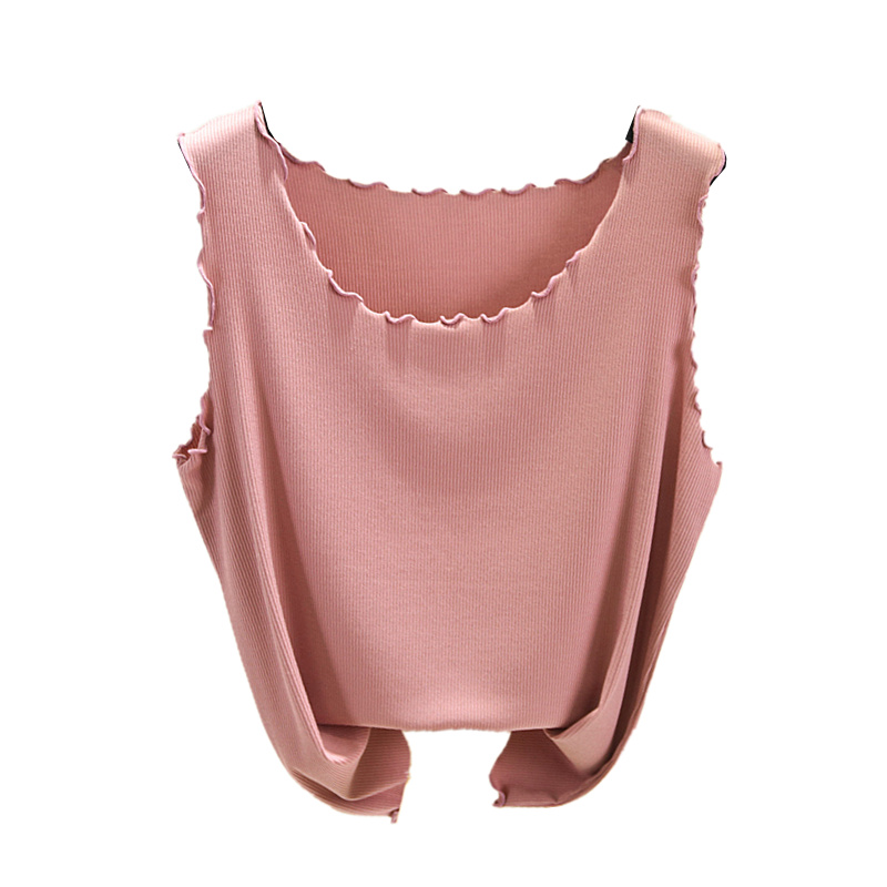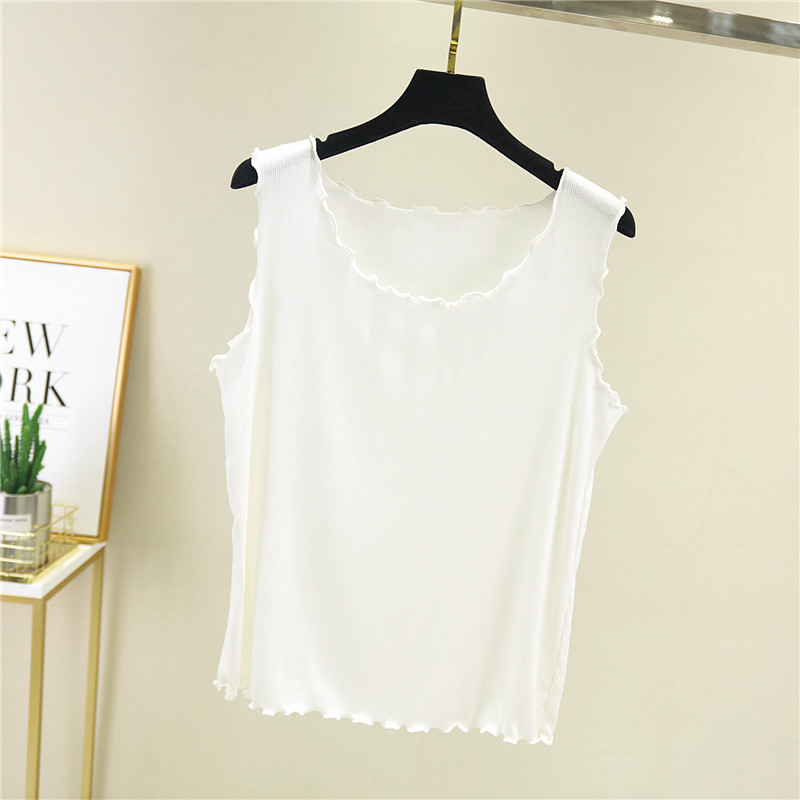 Modell outside wearing vest woman white inner lap without mark agaric edge spring and summer thin round neckline with sleeveless harnet