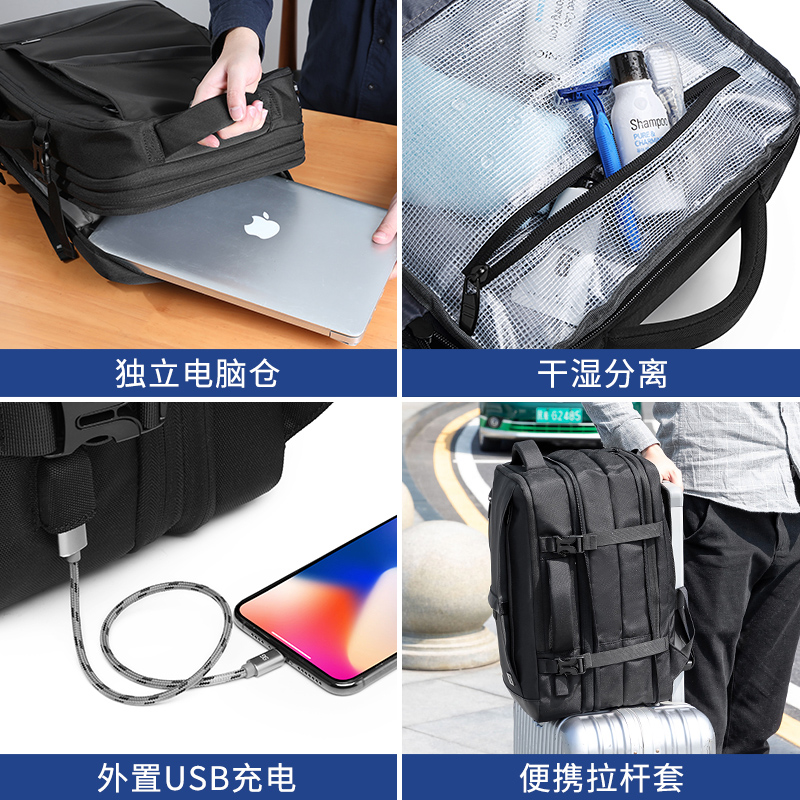 Men's Business Office Laptop Bag Expandable Backpack Large Capacity Travel Backpack Multifunctional Travel Carrying Bag