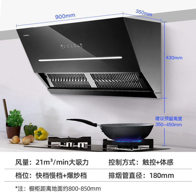 Konka Range Hood Household Large Suction Hood Kitchen With Suction Machine Side Suction Type Suction Suction Machine Automatic Cleaning