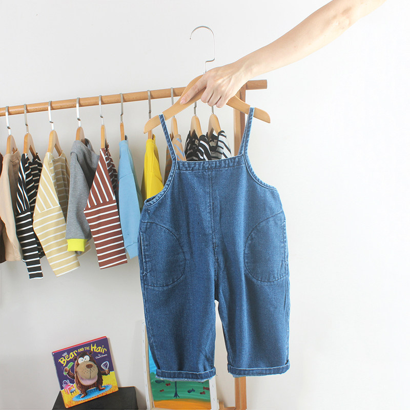 Baby overalls spring and autumn models 1-3 baby denim pants boys and girls Korean version loose trousers tide 2 children's clothing