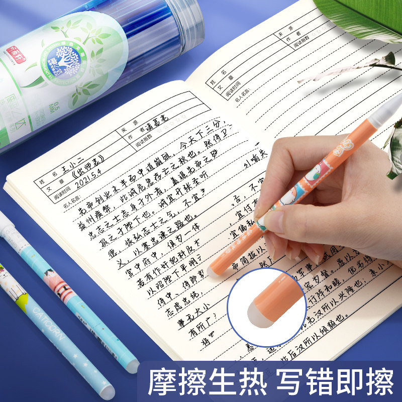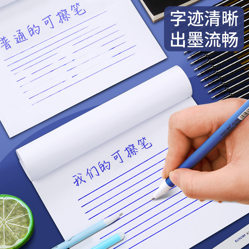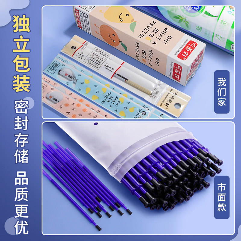100 erasable refill crystal blue 3-5 grade primary school students with heat magic rub easy to wipe ink blue black 0.5mm cute cartoon rubbing refill 0.38 black female magic sassafras blue